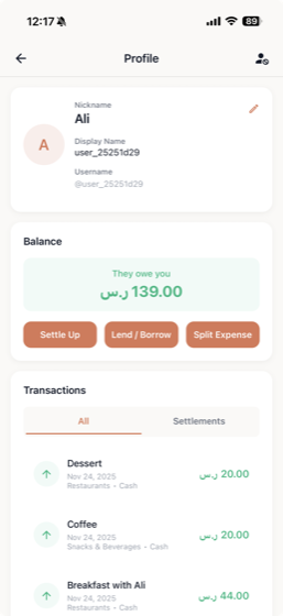 Track expenses effortlessly with AI-powered voice commands in Arabic & English. Split bills with friends, manage loans, and stay on top of your finances.
